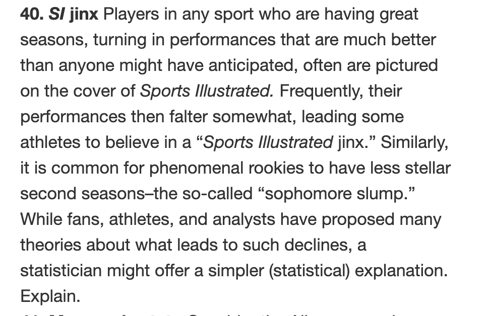 Solved 40. SI jinx Players in any sport who are having great Sports Illustrated Jinx Psychology For those that don’t know, the si jinx is an urban legend that states that a team or player’s performance is made worse by being. We decided to call in an expert. The sports illustrated jinx and the madden curse are extreme examples of regression. What they are forgetting is that to make. The magazine interviewed sports psychologist jim loehr. Sports Illustrated Jinx Psychology.